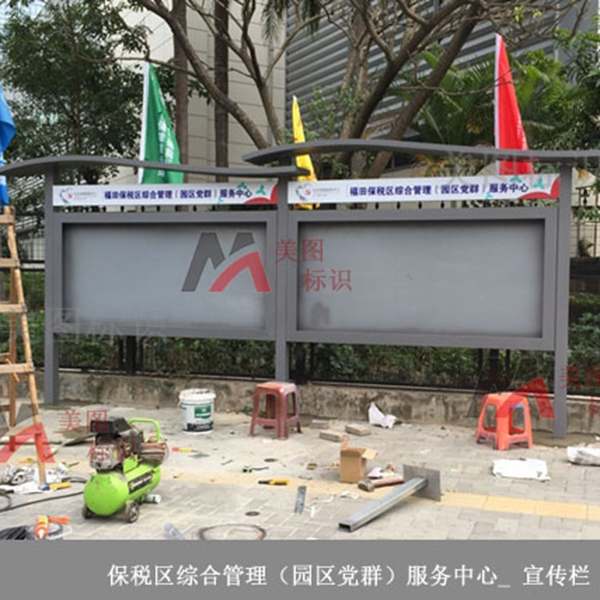 制作工艺:以镀锌钢板为主材,顶部略带弧度,整体结构方正,更显美观,大气;液压支撑面板,可打开更资料内框文件;表面的钢化下班通透、耐磨‘,安全。福田保税区综 合管理(园区党群)服务中心“字样当前为贴膜,也可丝印或是立体字。