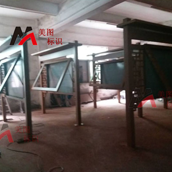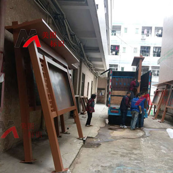 安装前效果:宣传栏太长,运输不便,制成单栏运输,到场地再组装。