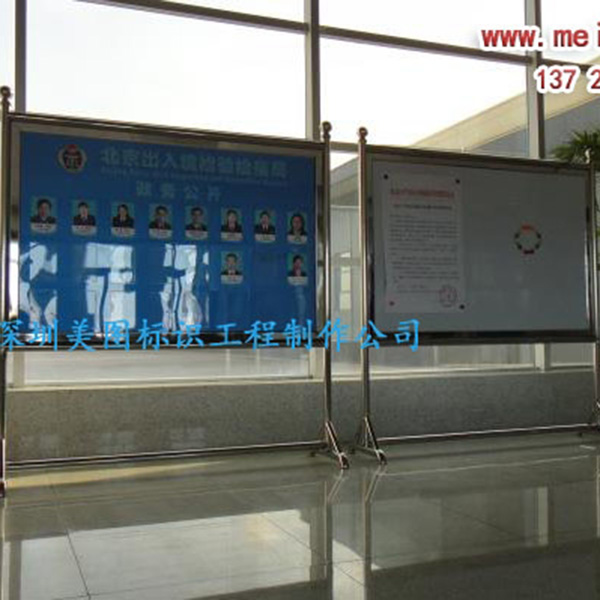 不锈钢材质制作,主要用于室内。换画面板采用液压杆支撑打开。